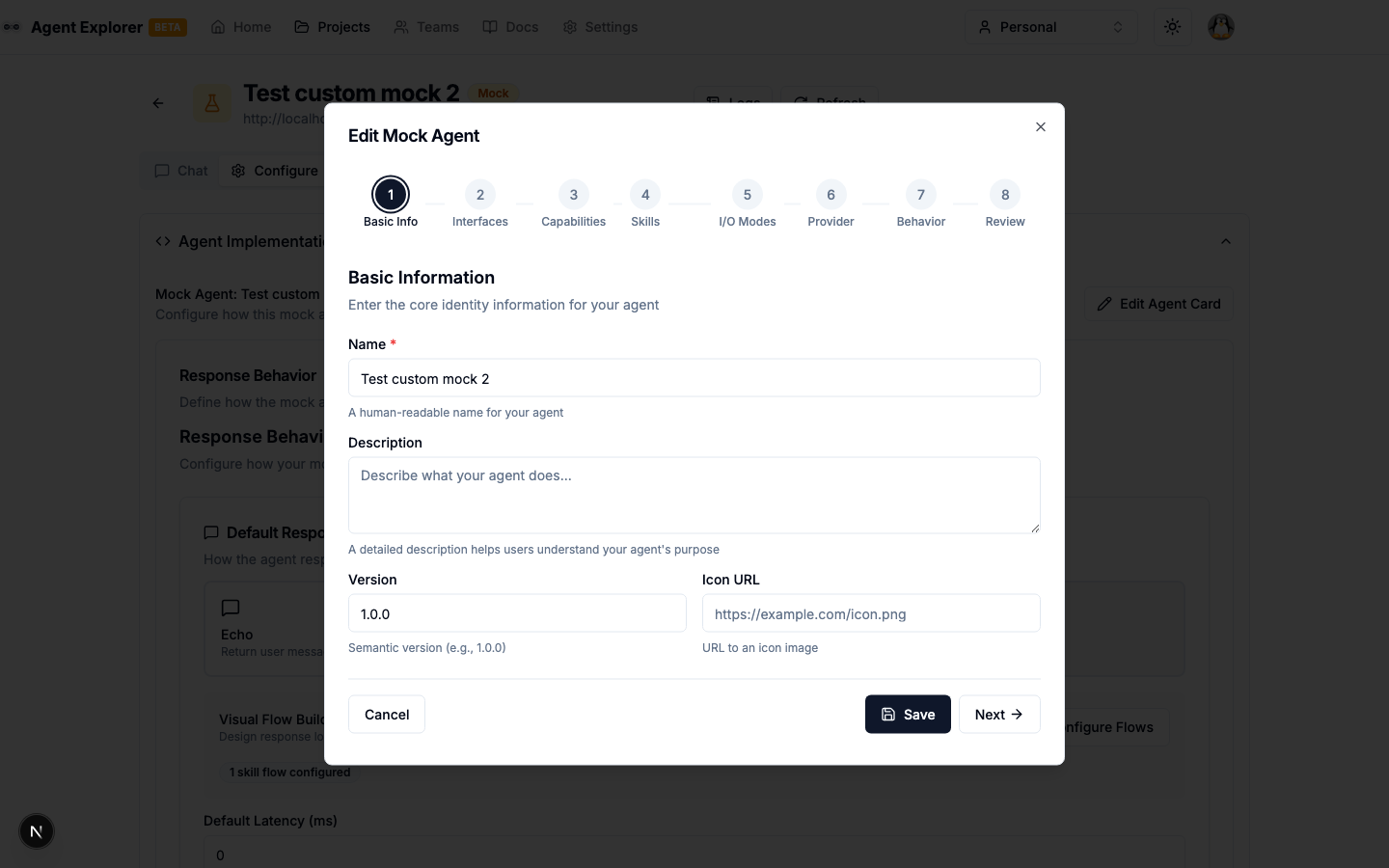 - Edit a Mock Agent (Step 7 — Response Behaviour)